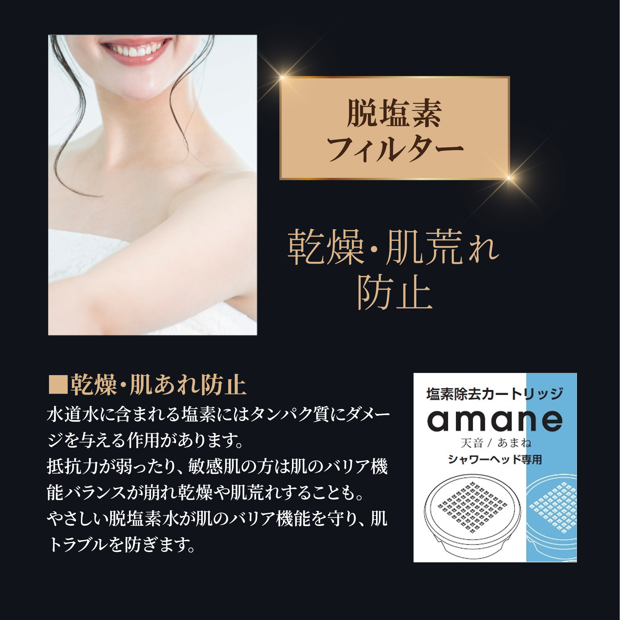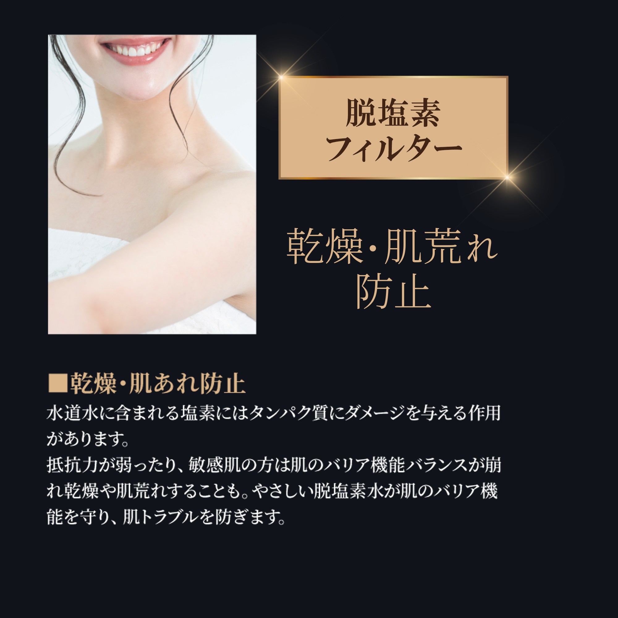抵抗力が弱ったり、敏感肌の方は肌のバリア機能バランスが崩れ乾燥や肌荒れすることも。やさしい脱塩素水が肌のバリア機能を守り、肌トラブルを防ぎます。