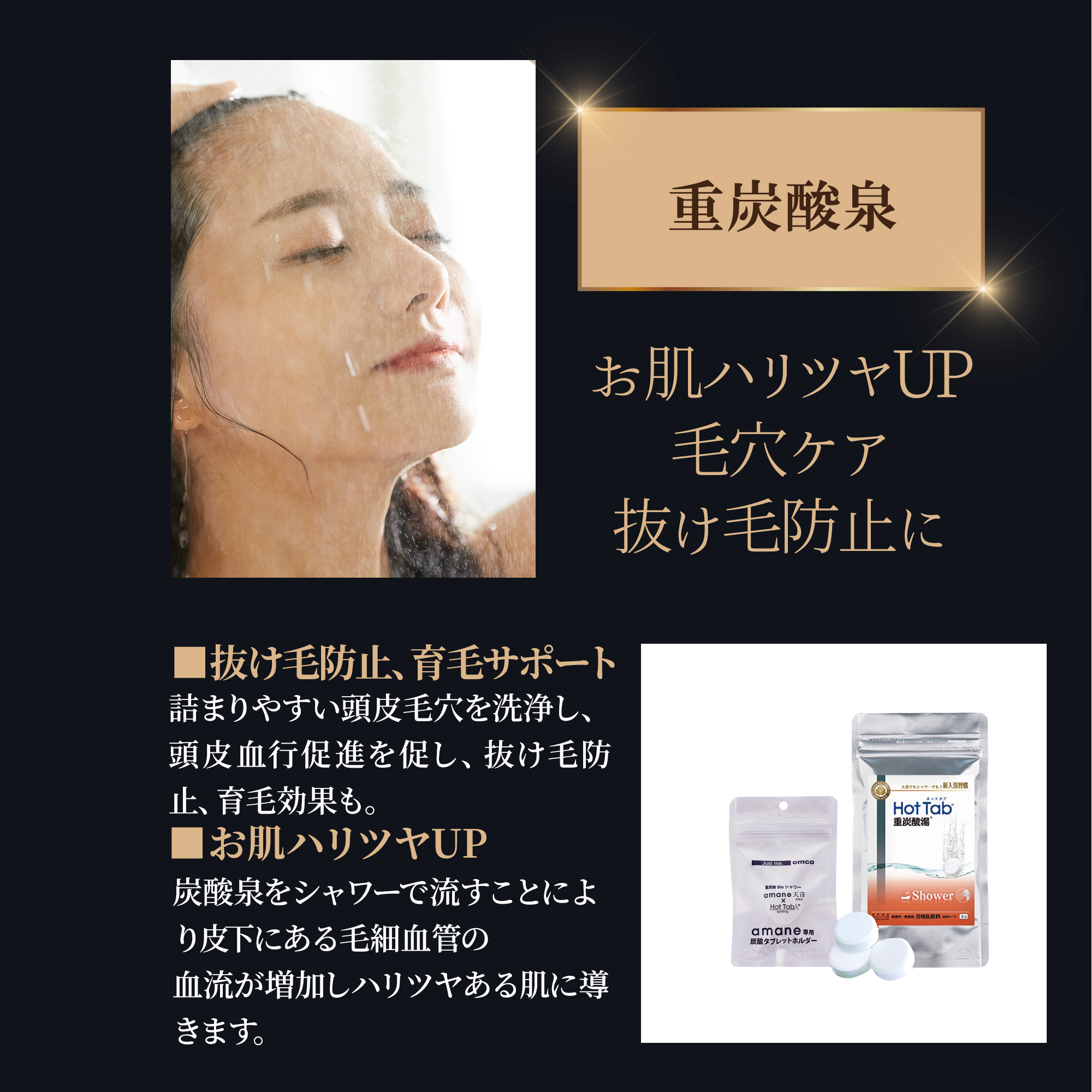 ②ホットタブ重炭酸湯シャワー※amaneシャワーカートリッジ推奨対応。タブレットケースに入れてお使いください
